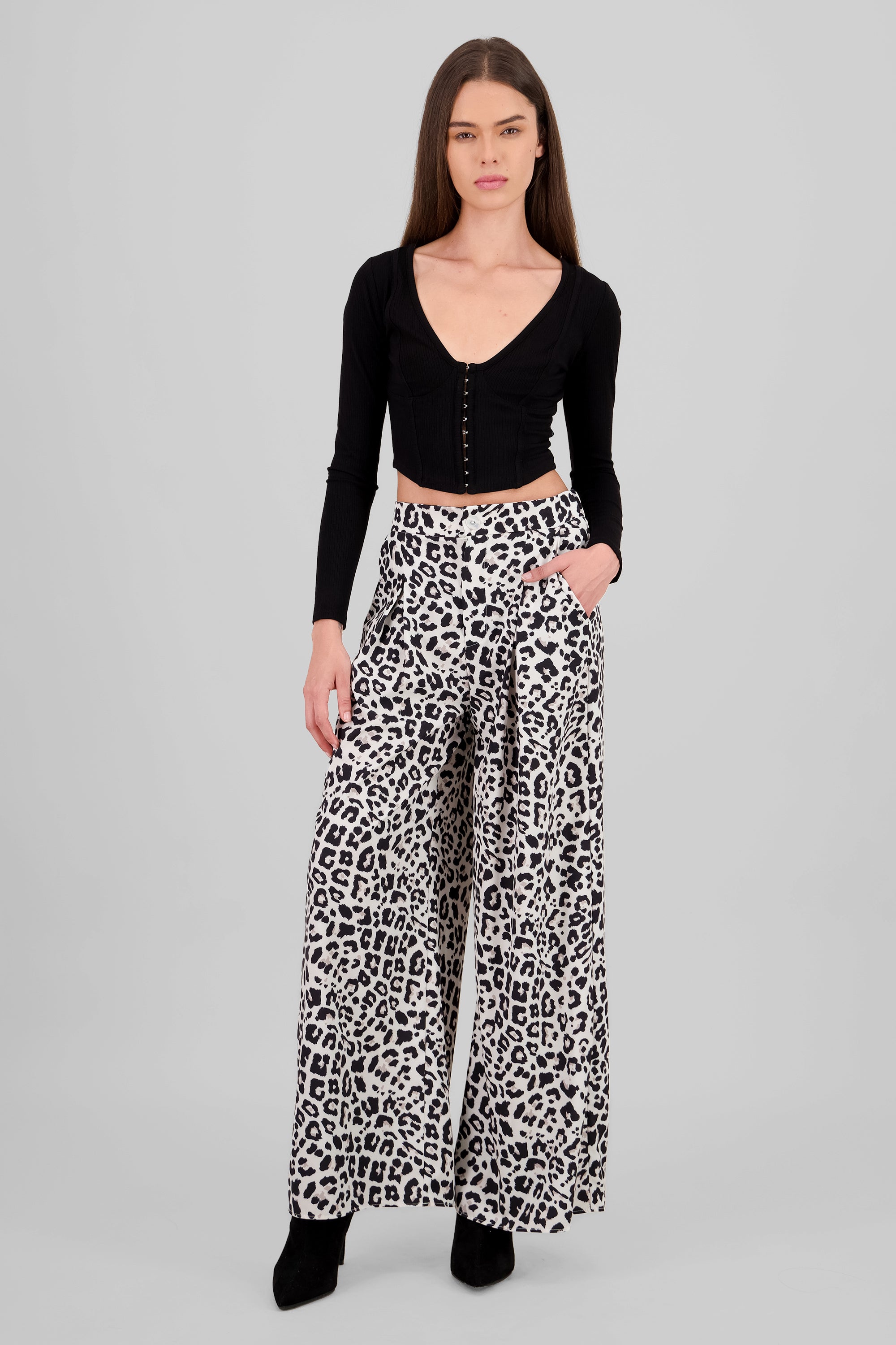 Wide Leg Fluid Animal Print Pants