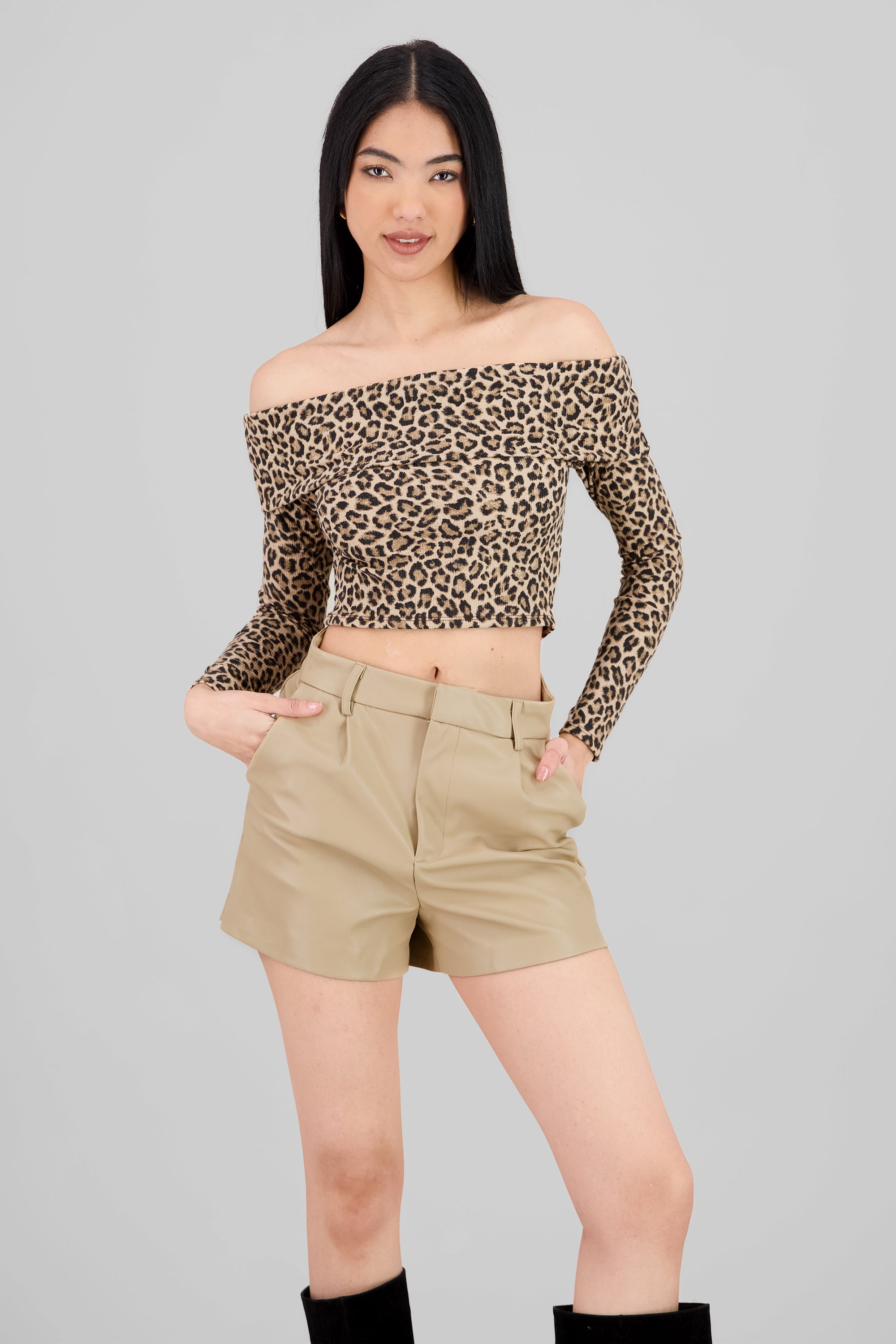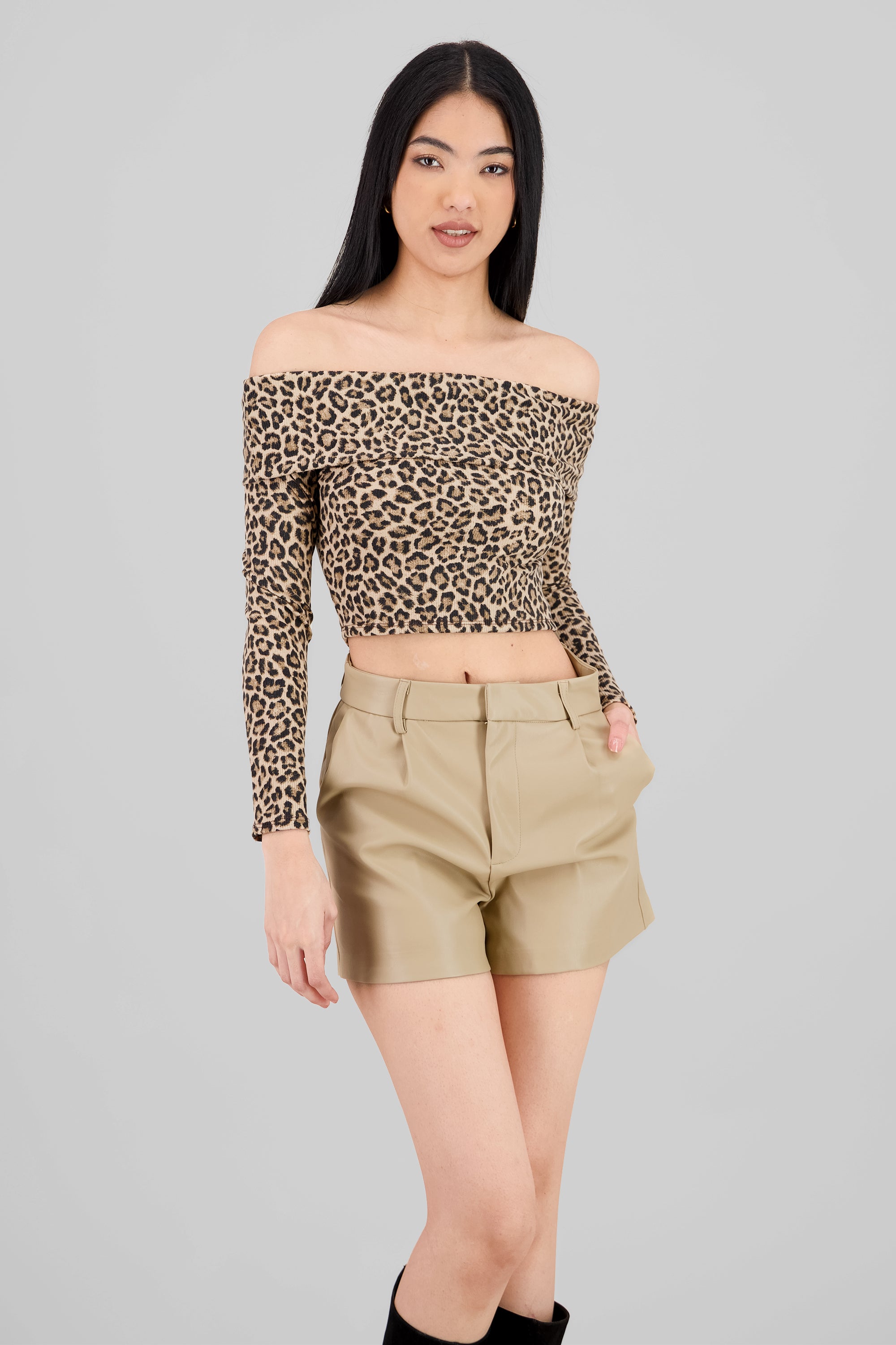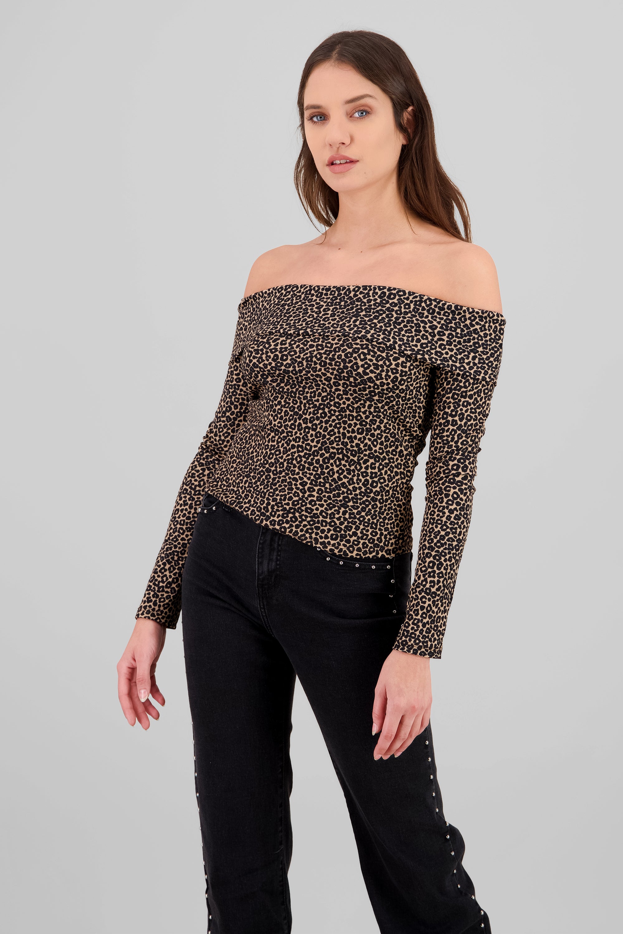 Long Sleeve Off Shoulder Leopard Top