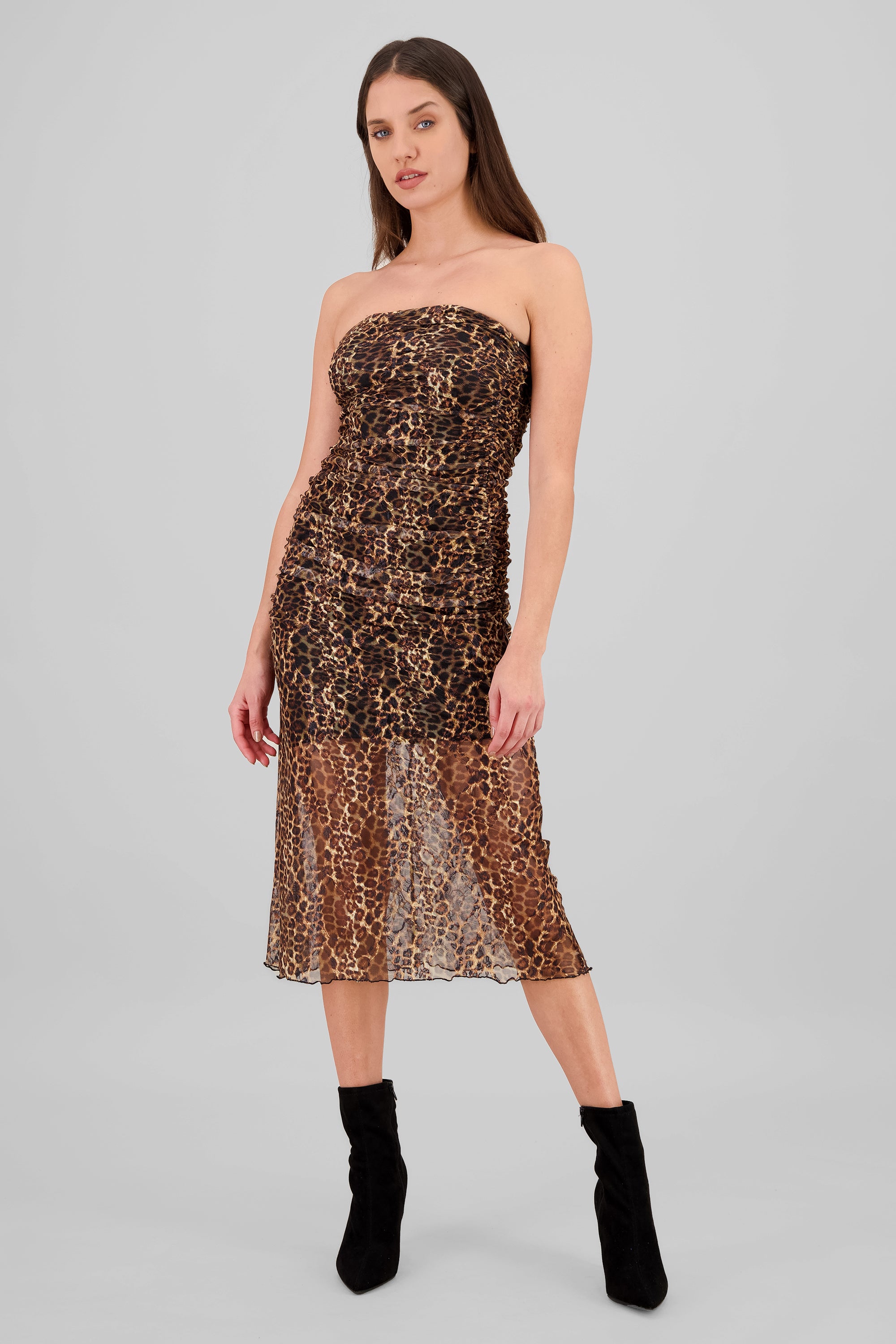 Animal Print Midi Mesh Dress