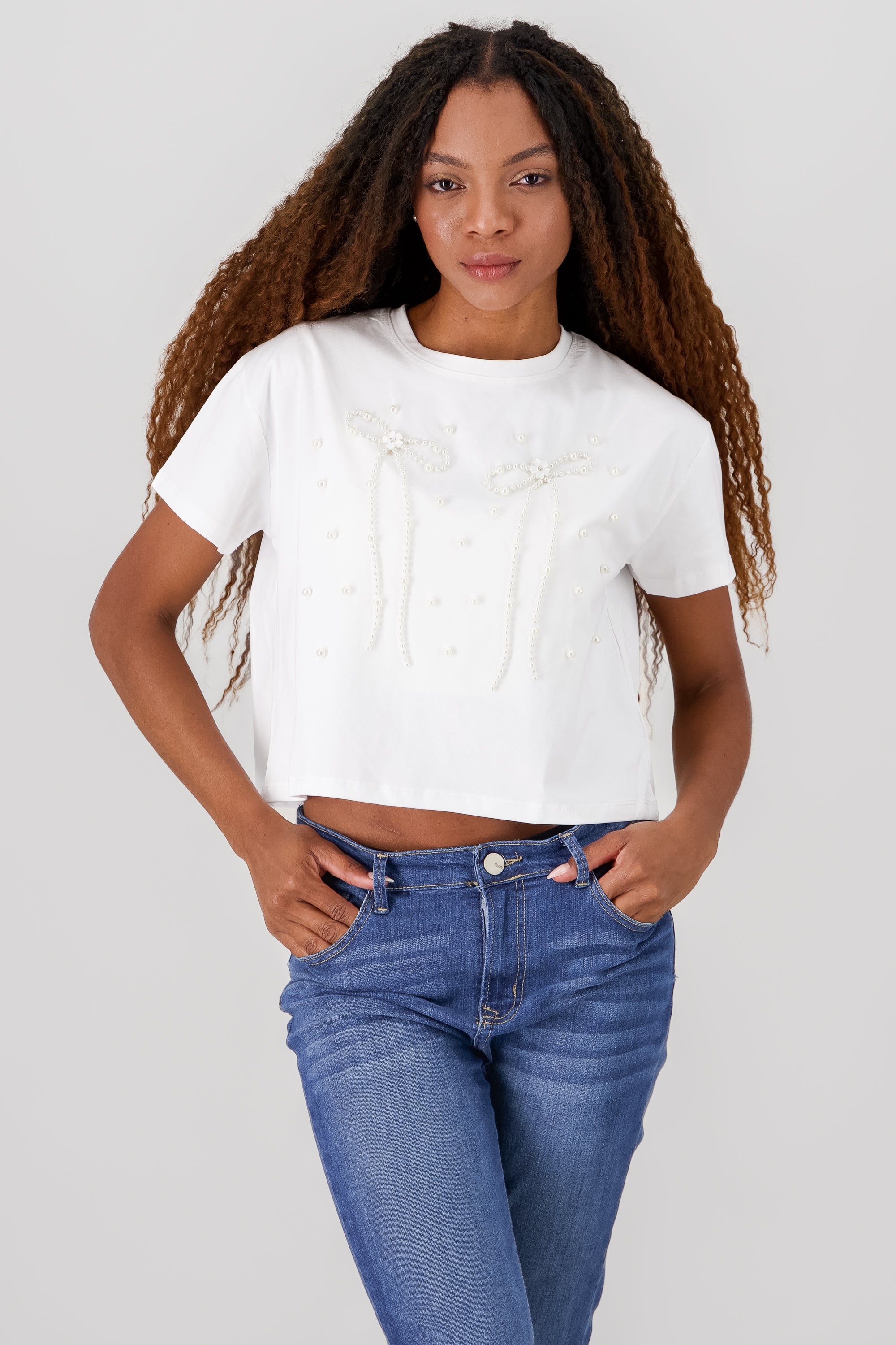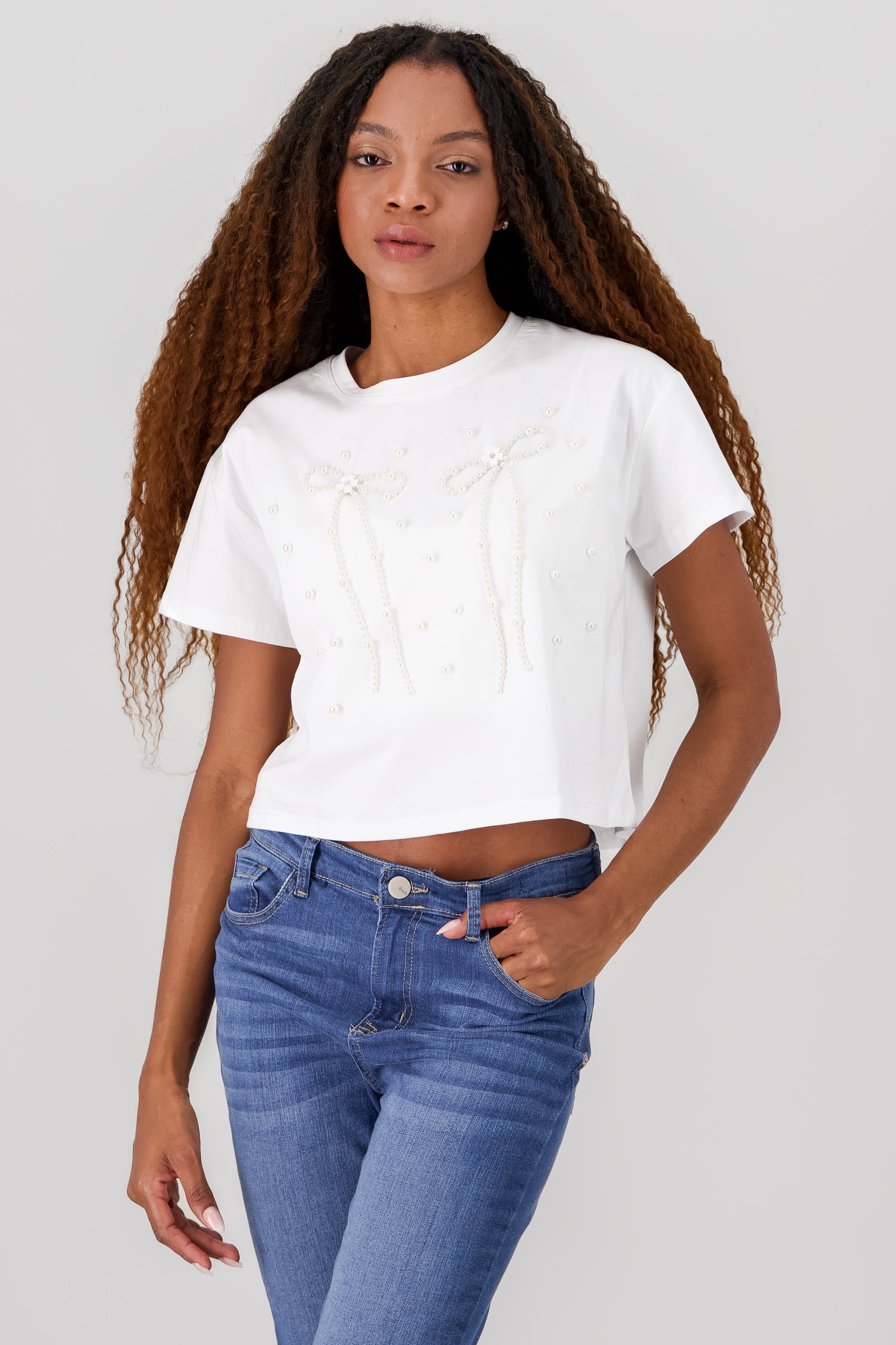 Embroidered Bow Plain Pants