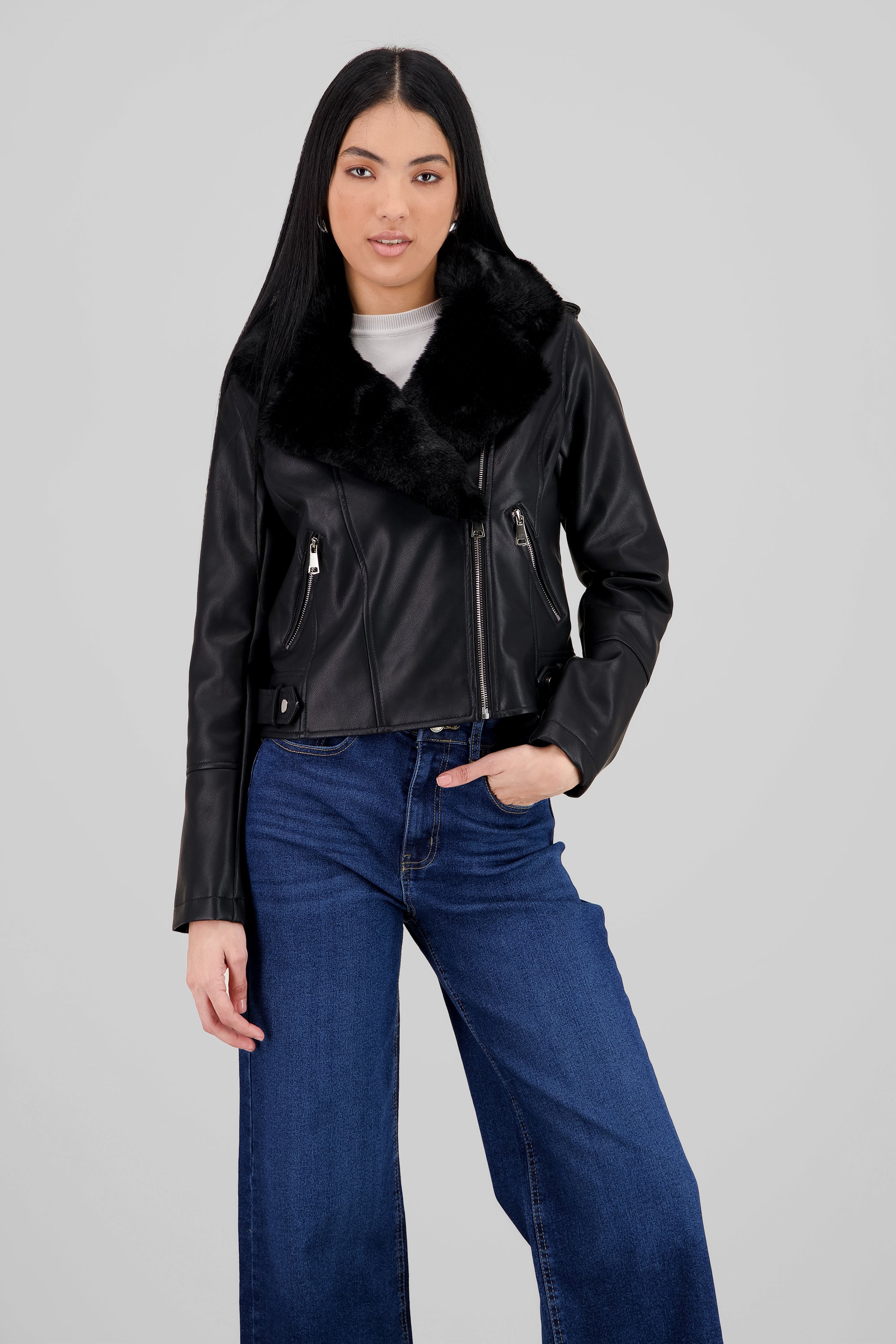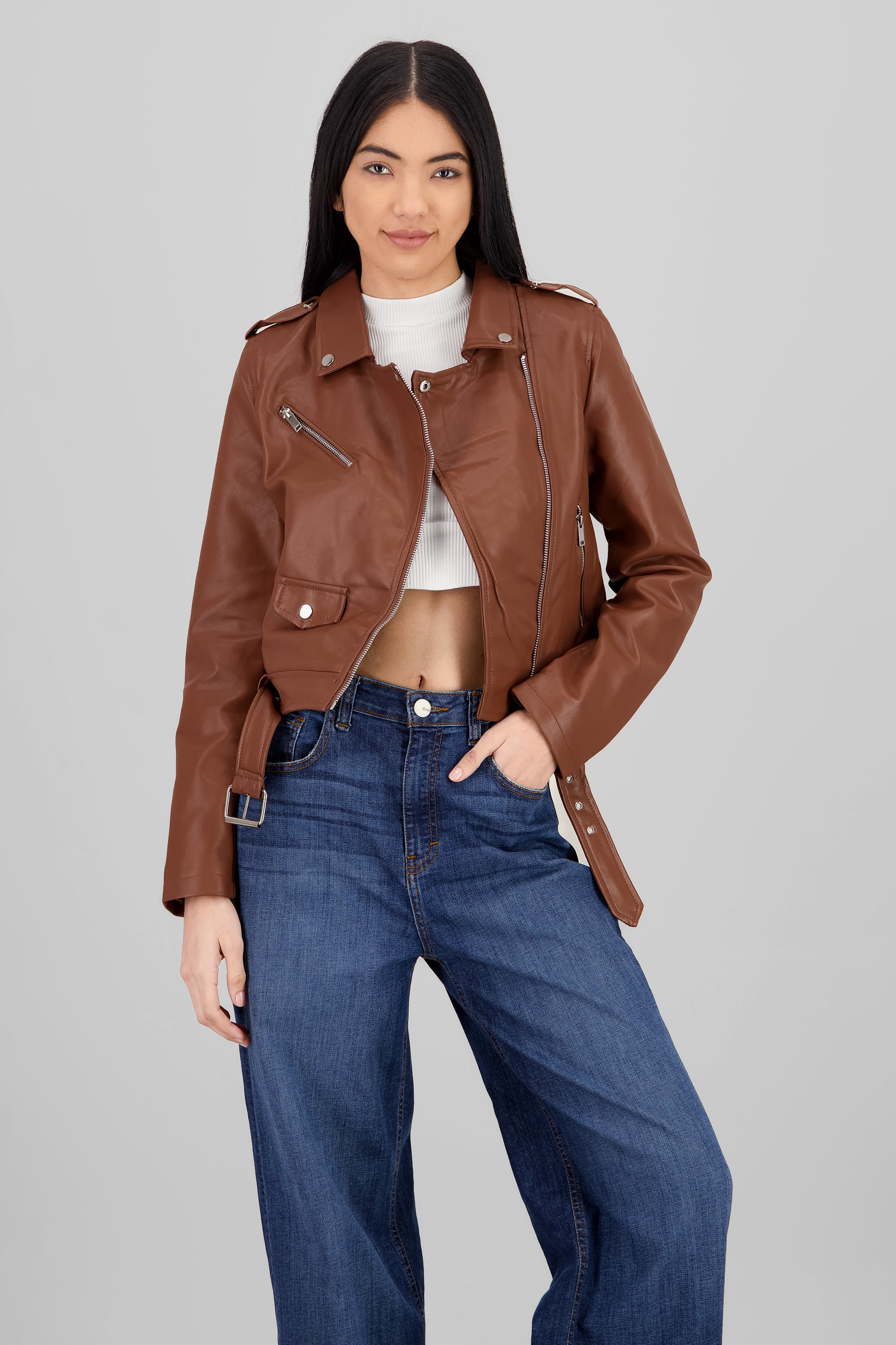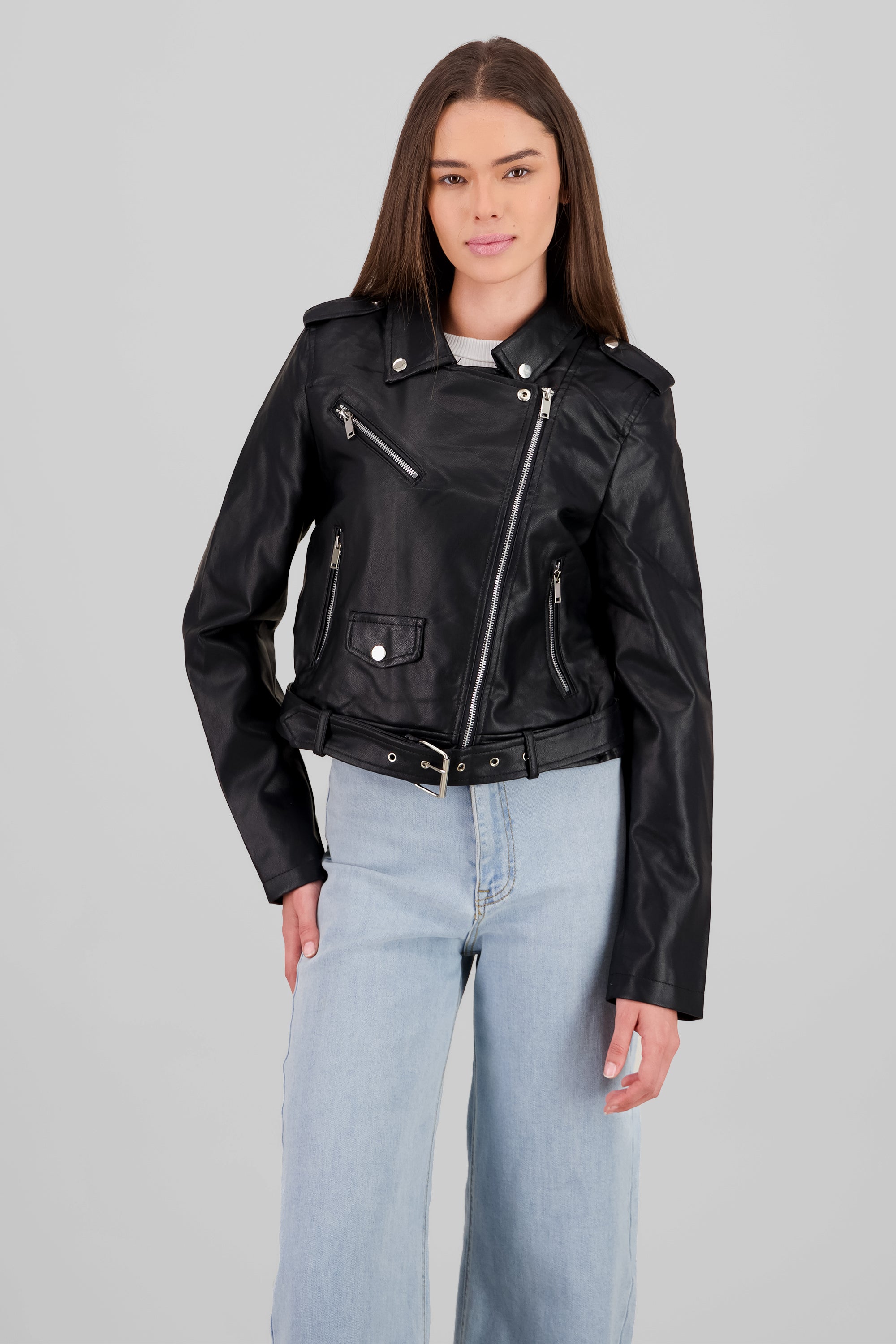 Leather effect moto jacket