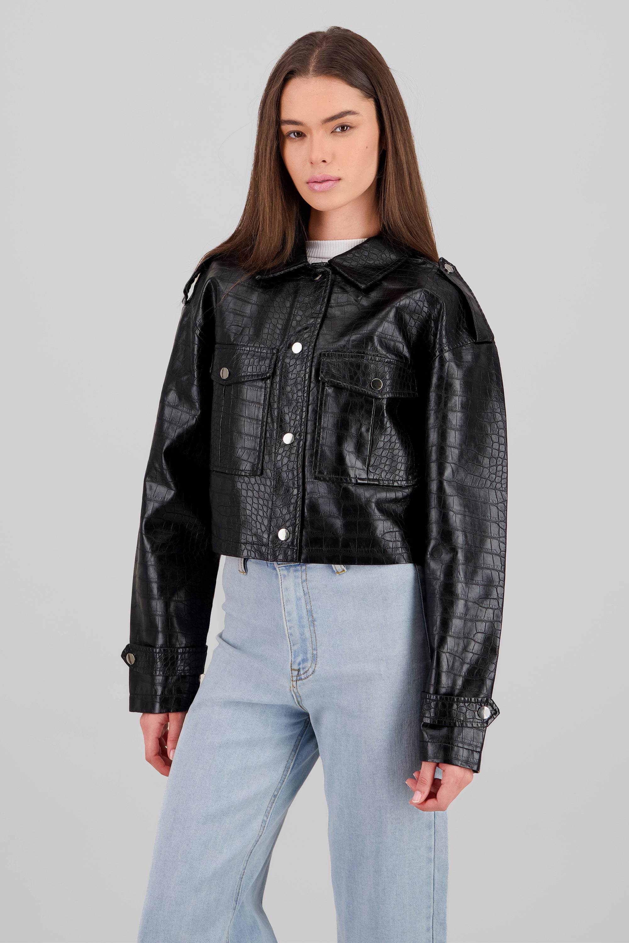 Snake Textured Leather Jacket