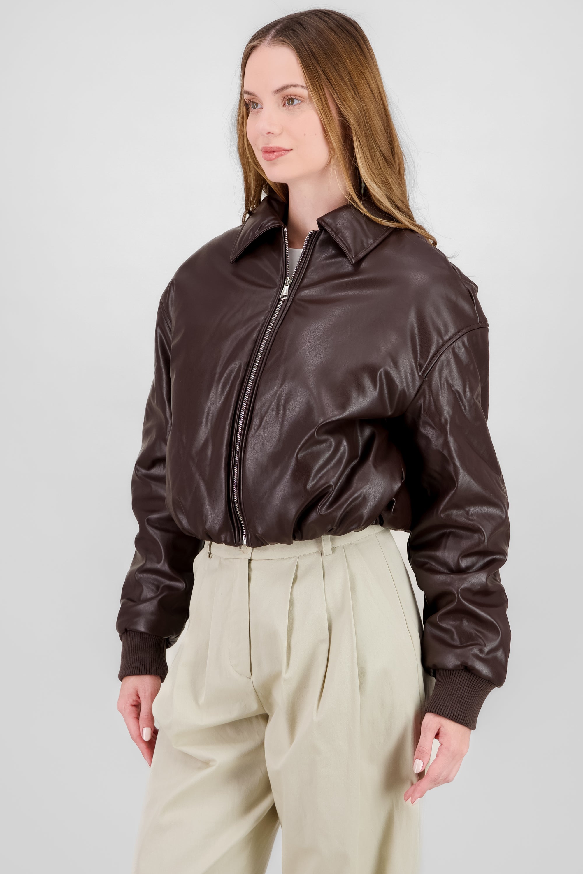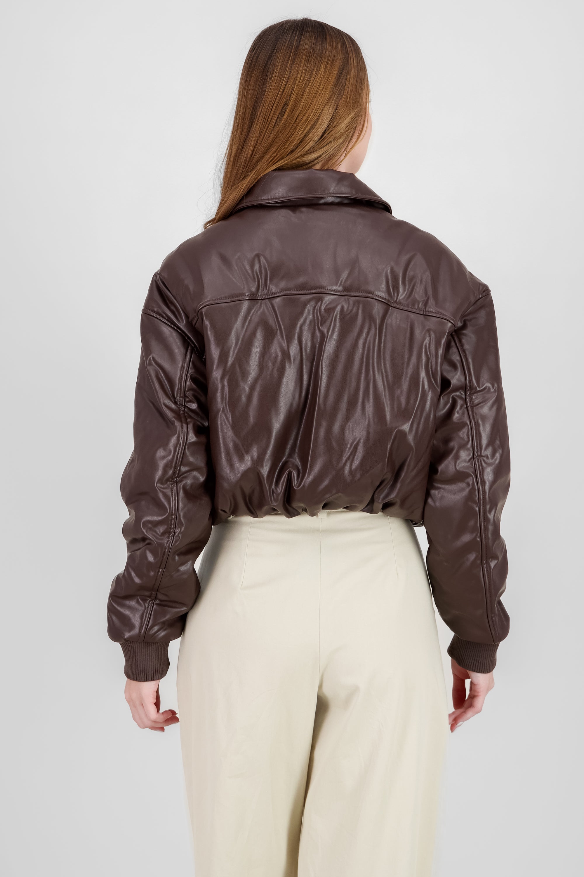Faux Leather Puffer Jacket