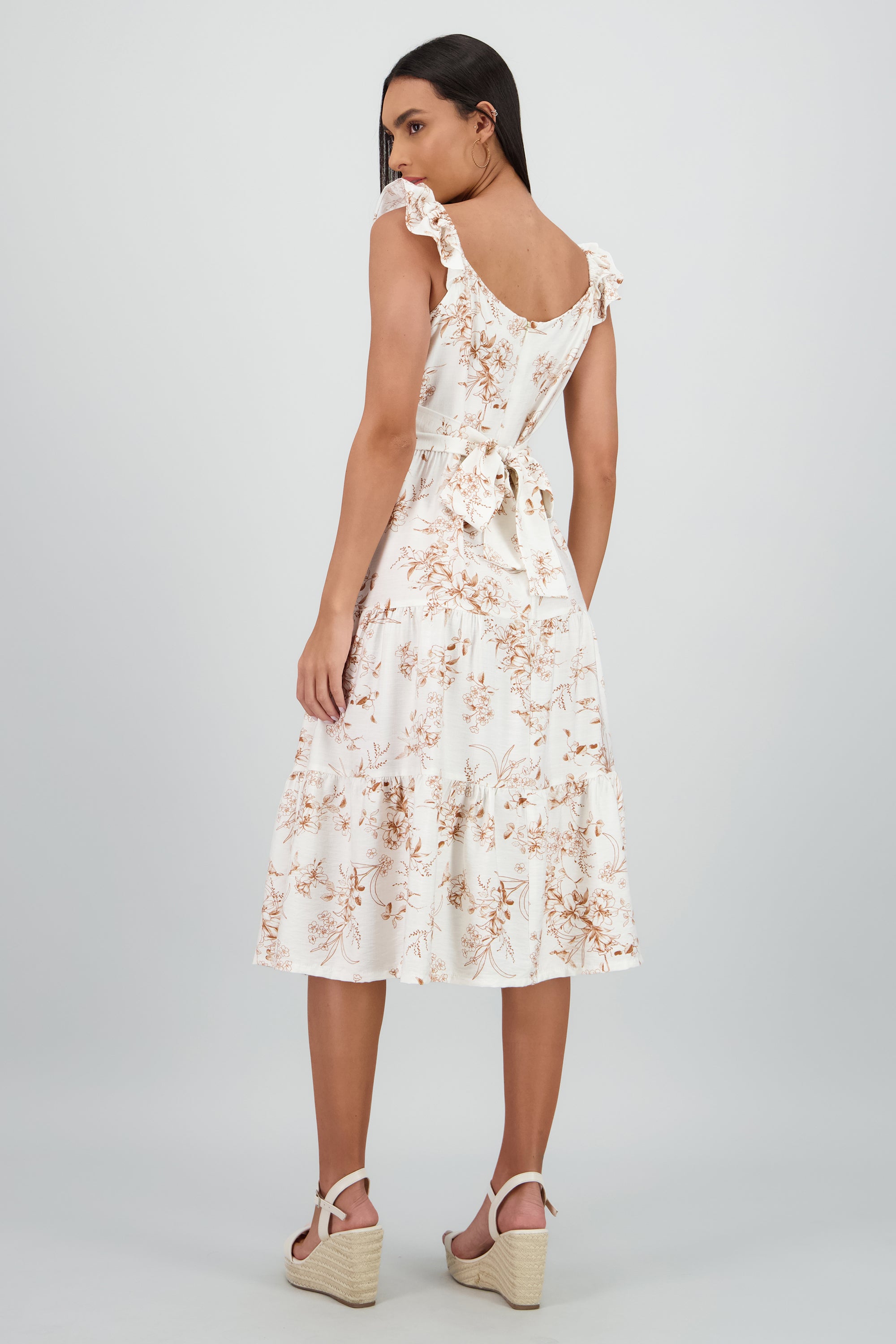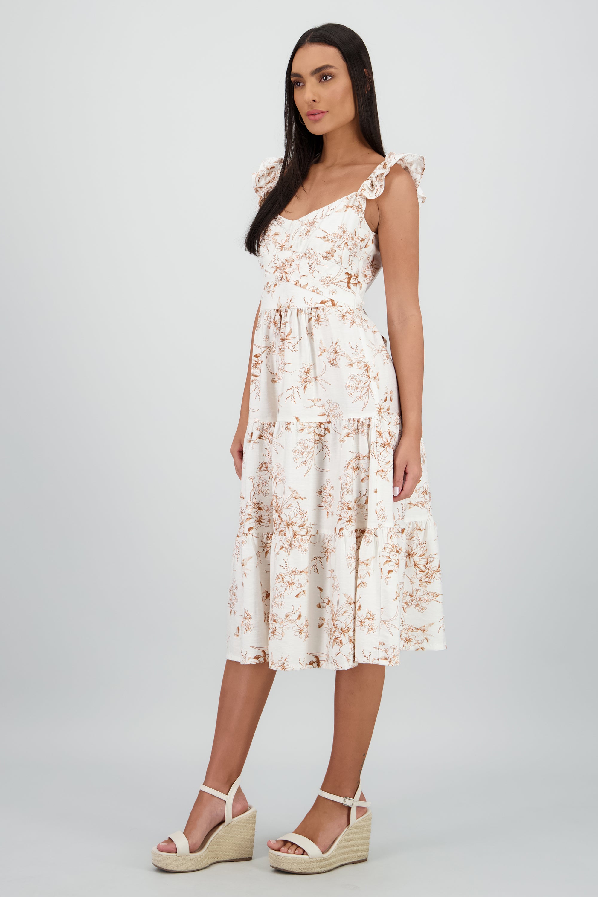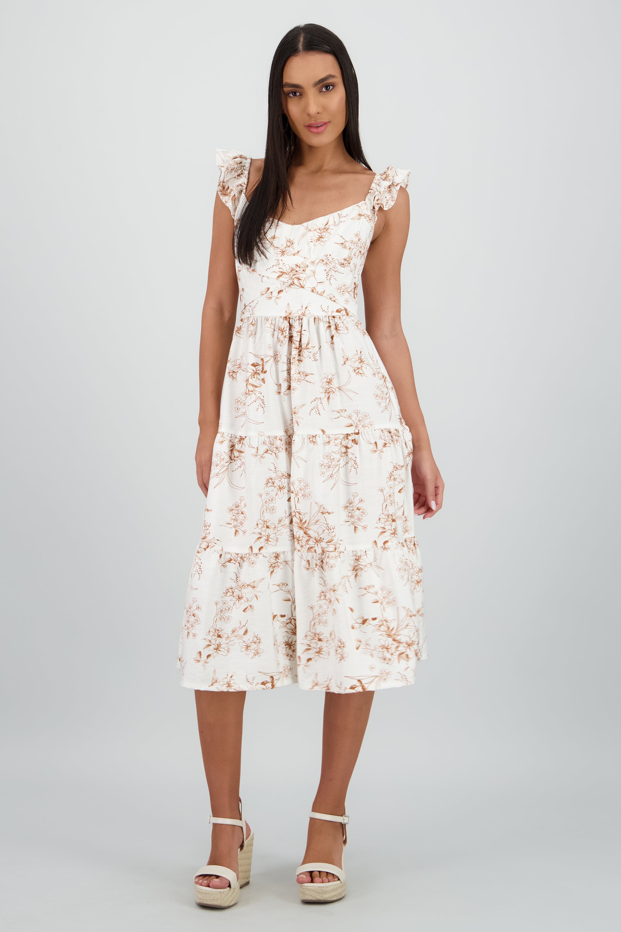 Floral ruffle detail midi dress