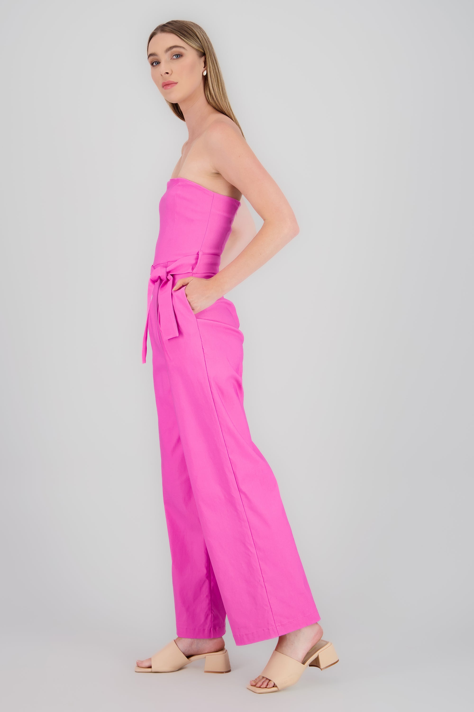 Solid Strapless Jumpsuit With Belt