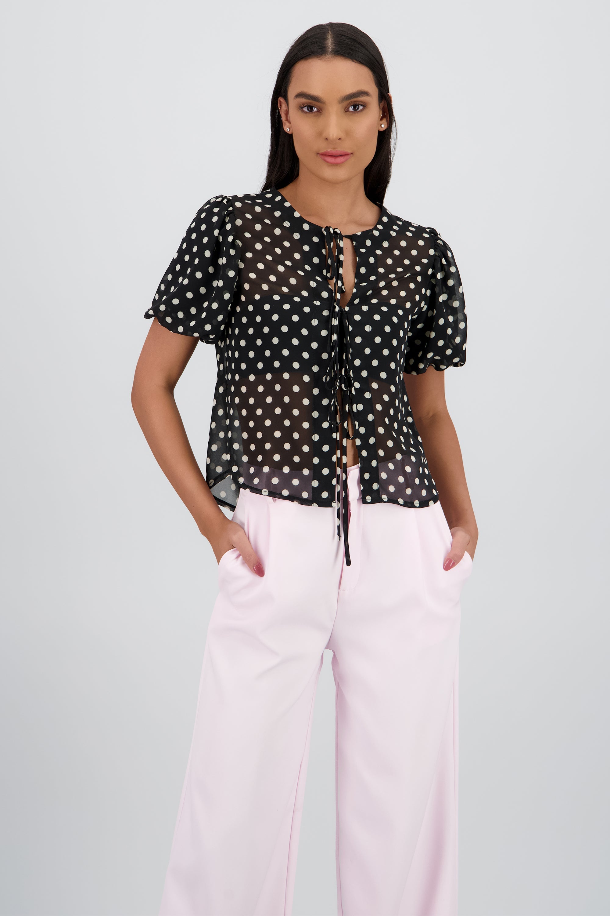 Puff Sleeve Polka Dots Blouse