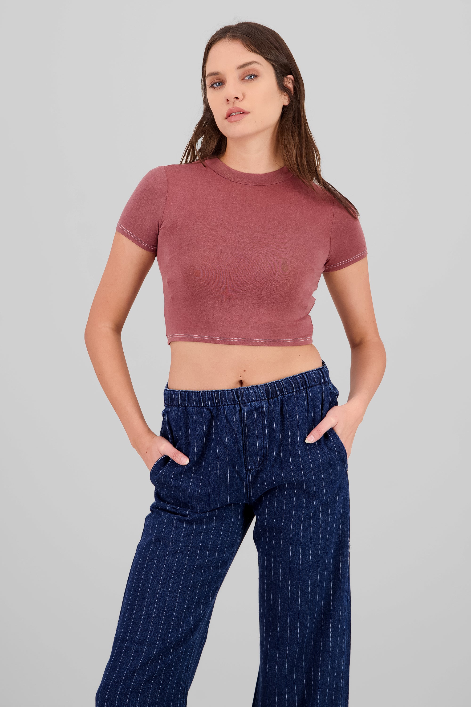 Looking for the perfect basic top? Look no further than our Washed Short Sleeve Crop Top! This stretchy crop top features a fitted, washed effect design and a comfortable crewneck. It's a must-have for any wardrobe, providing endless styling options for everyday wear.