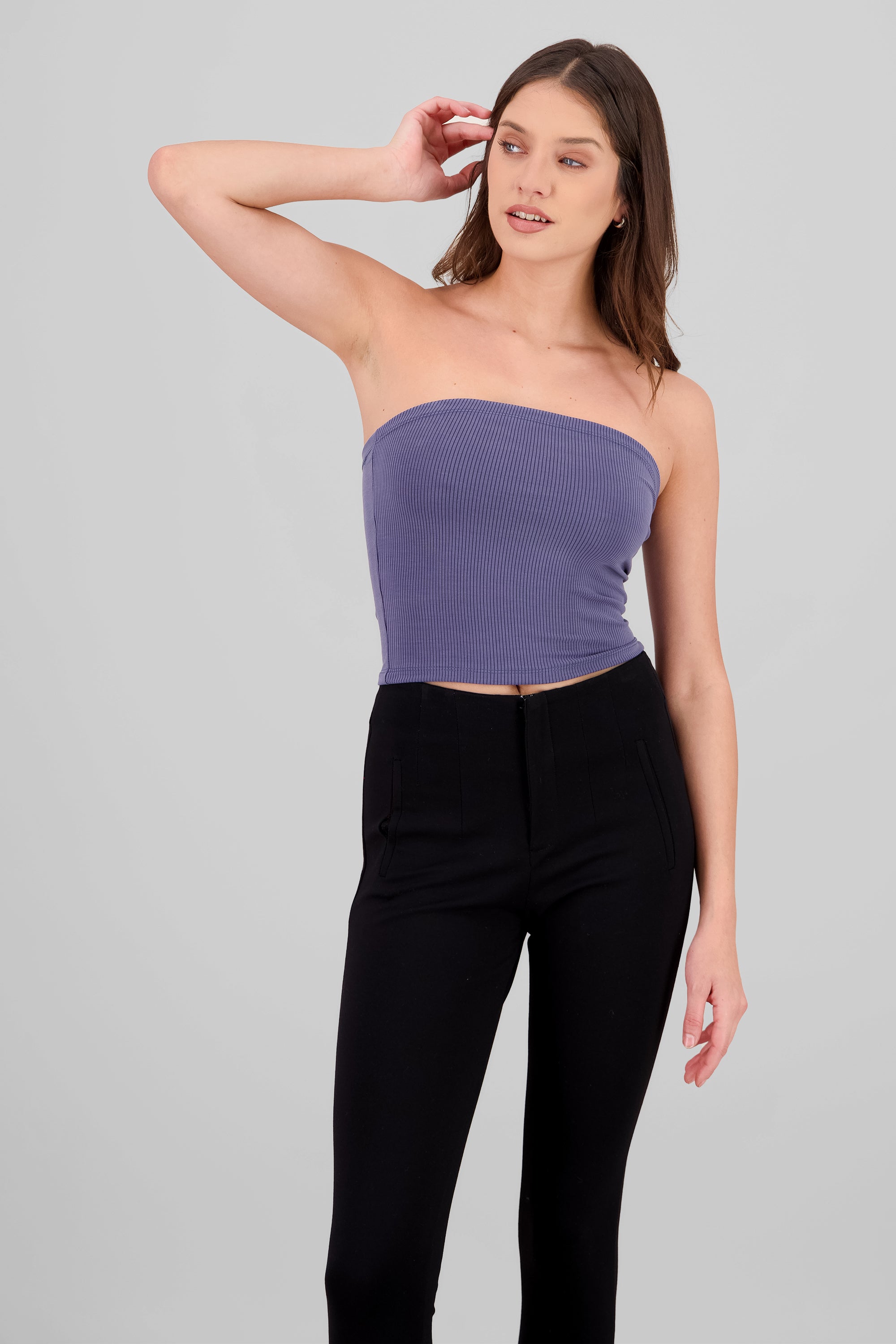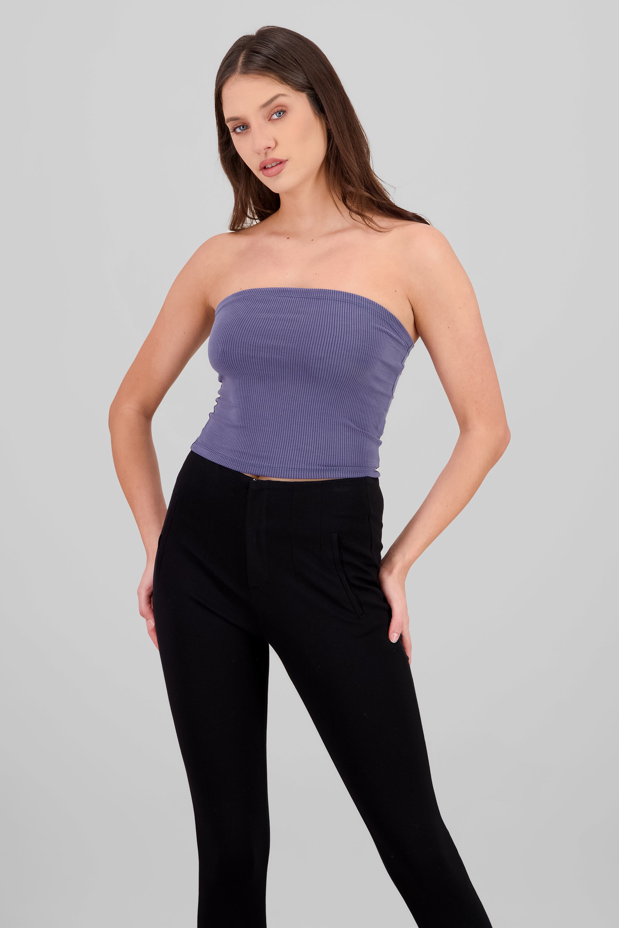 Enhance your daily wardrobe with our fitted Ribbed Bandeau Top, made from finely ribbed knit fabric to provide comfort and style. The strapless design adds a touch of flirty elegance, while the cropped length offers versatility for any occasion. Look effortlessly chic in this must-have essential.