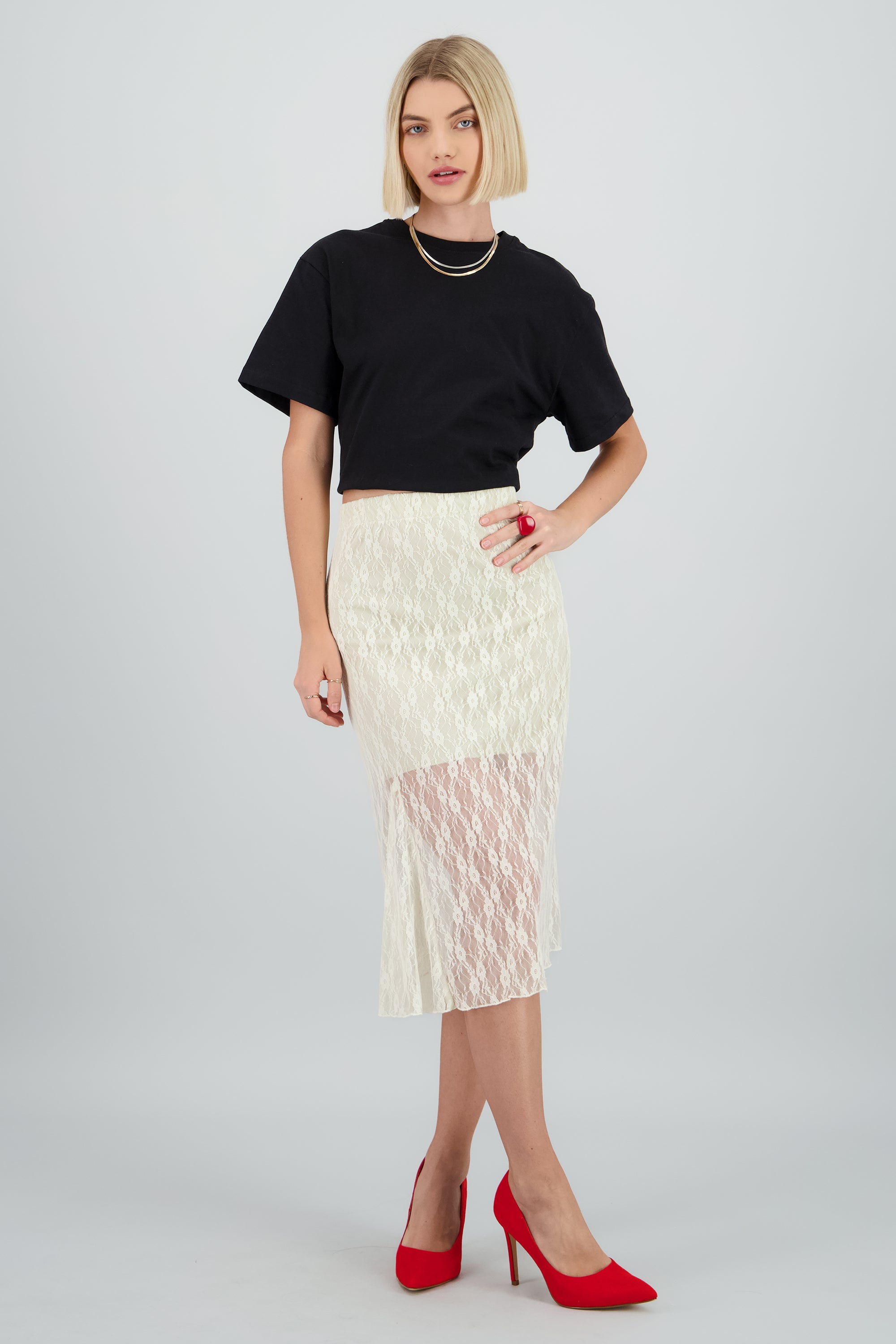 Midi skirt with lace waistband detail