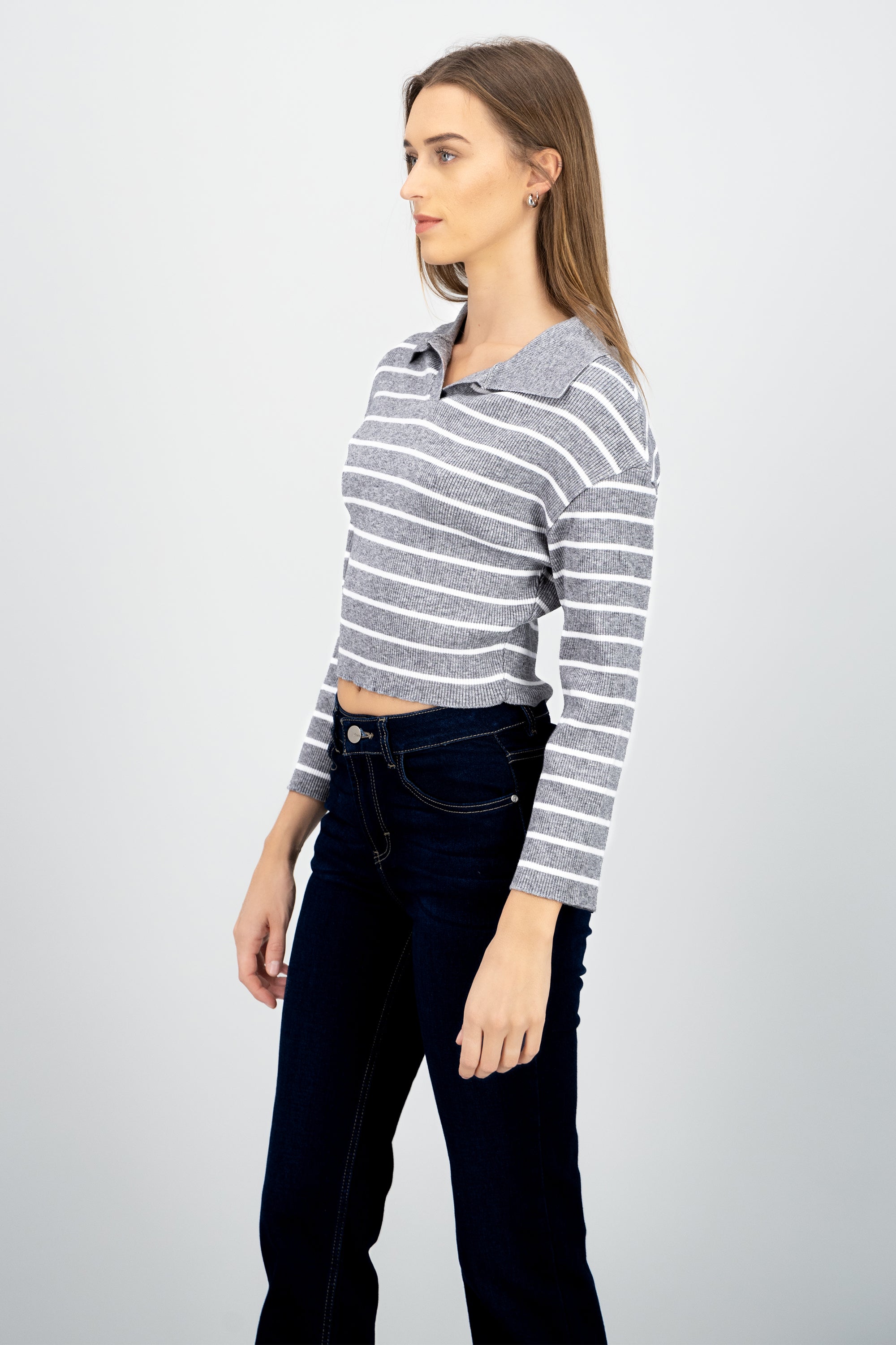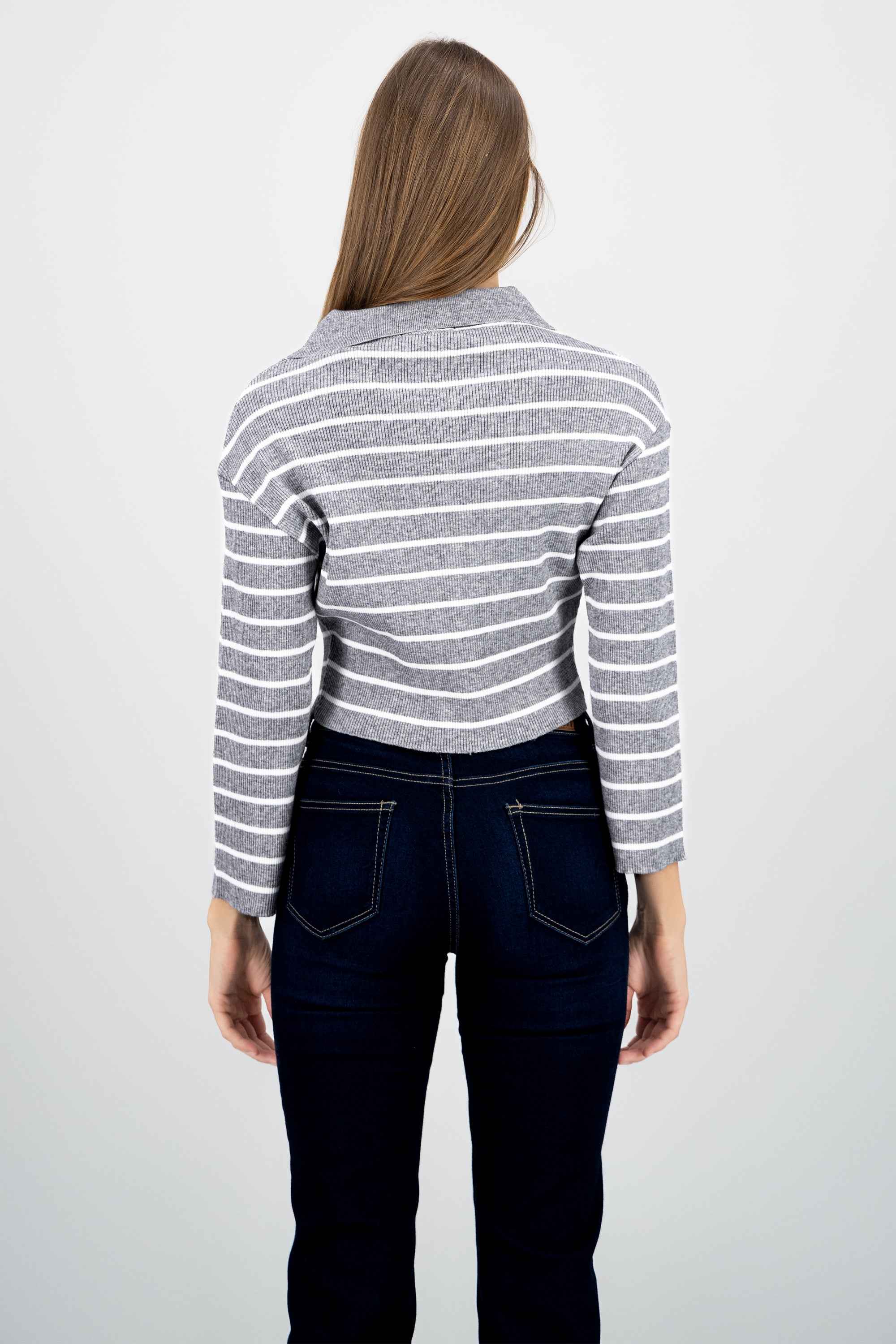 Striped Knit Polo Collar Sweater
