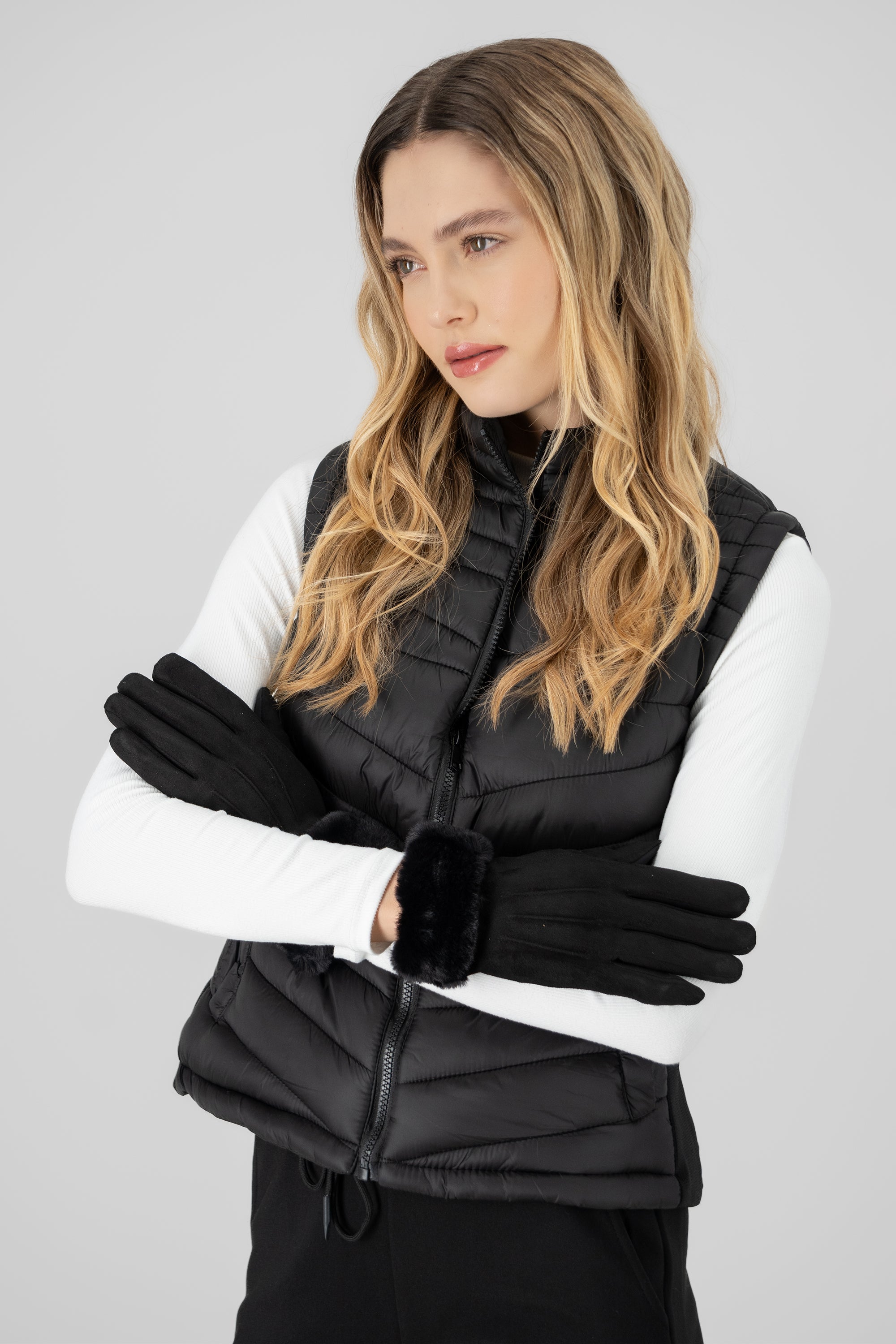 Suede Gloves with Plush Detail