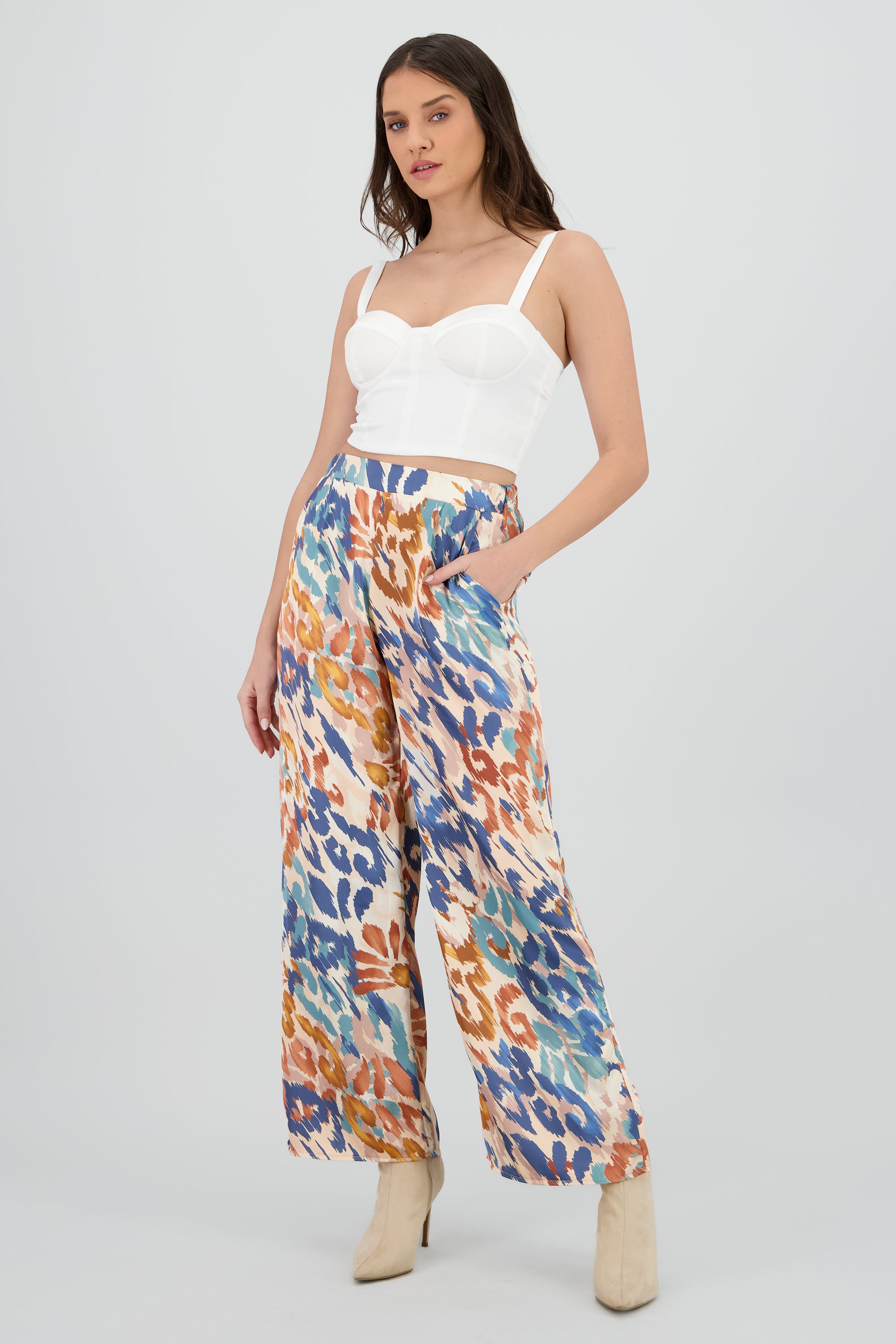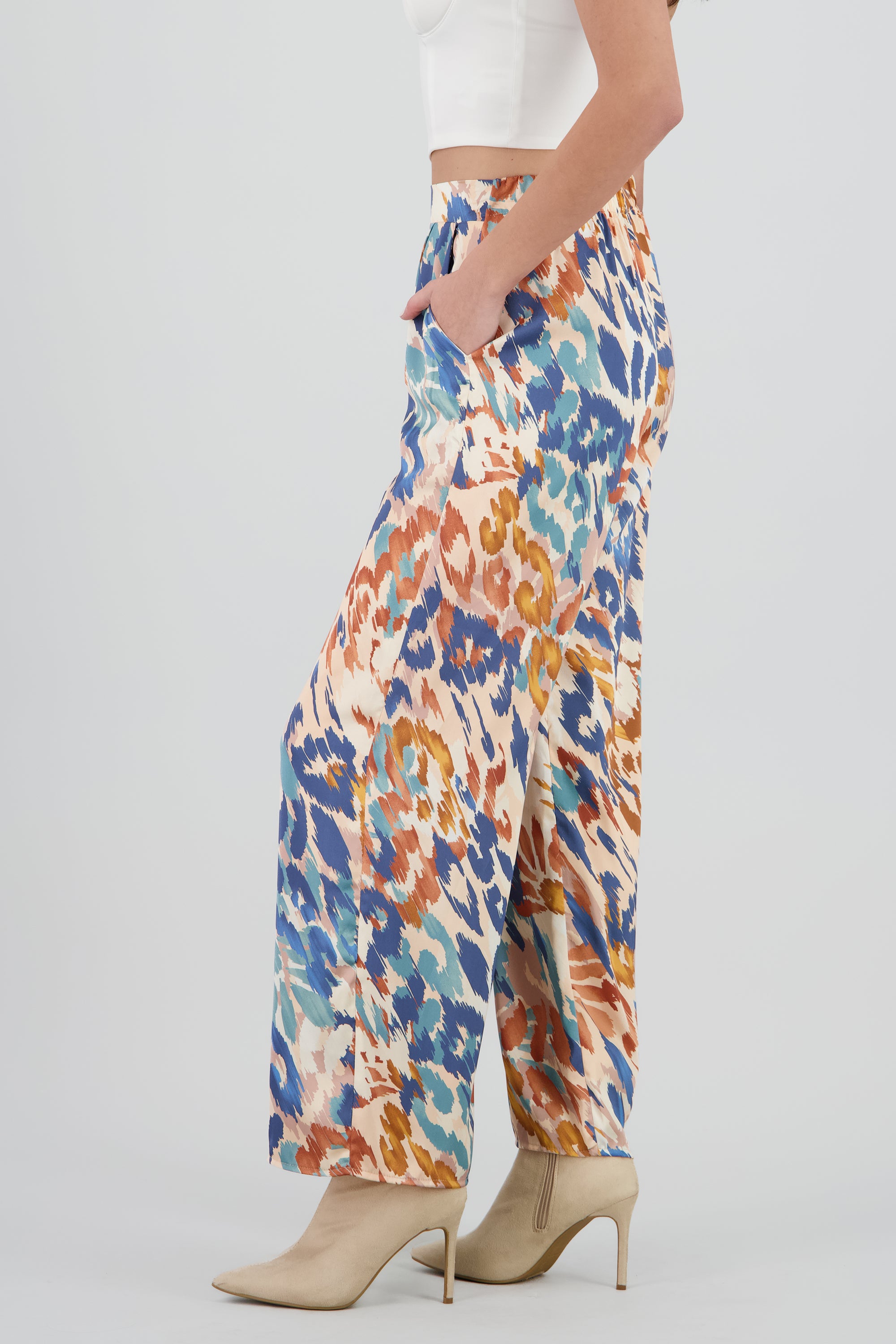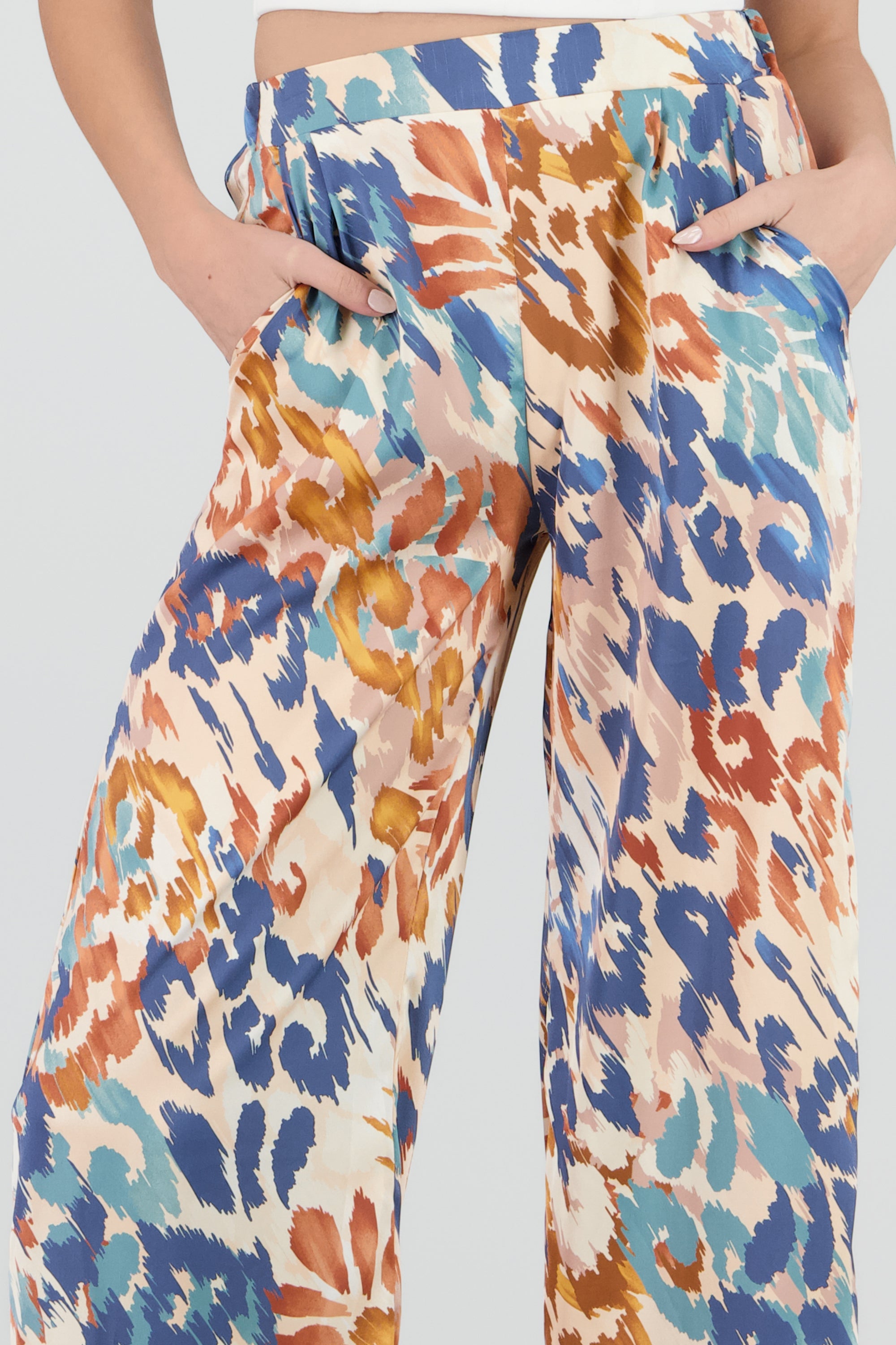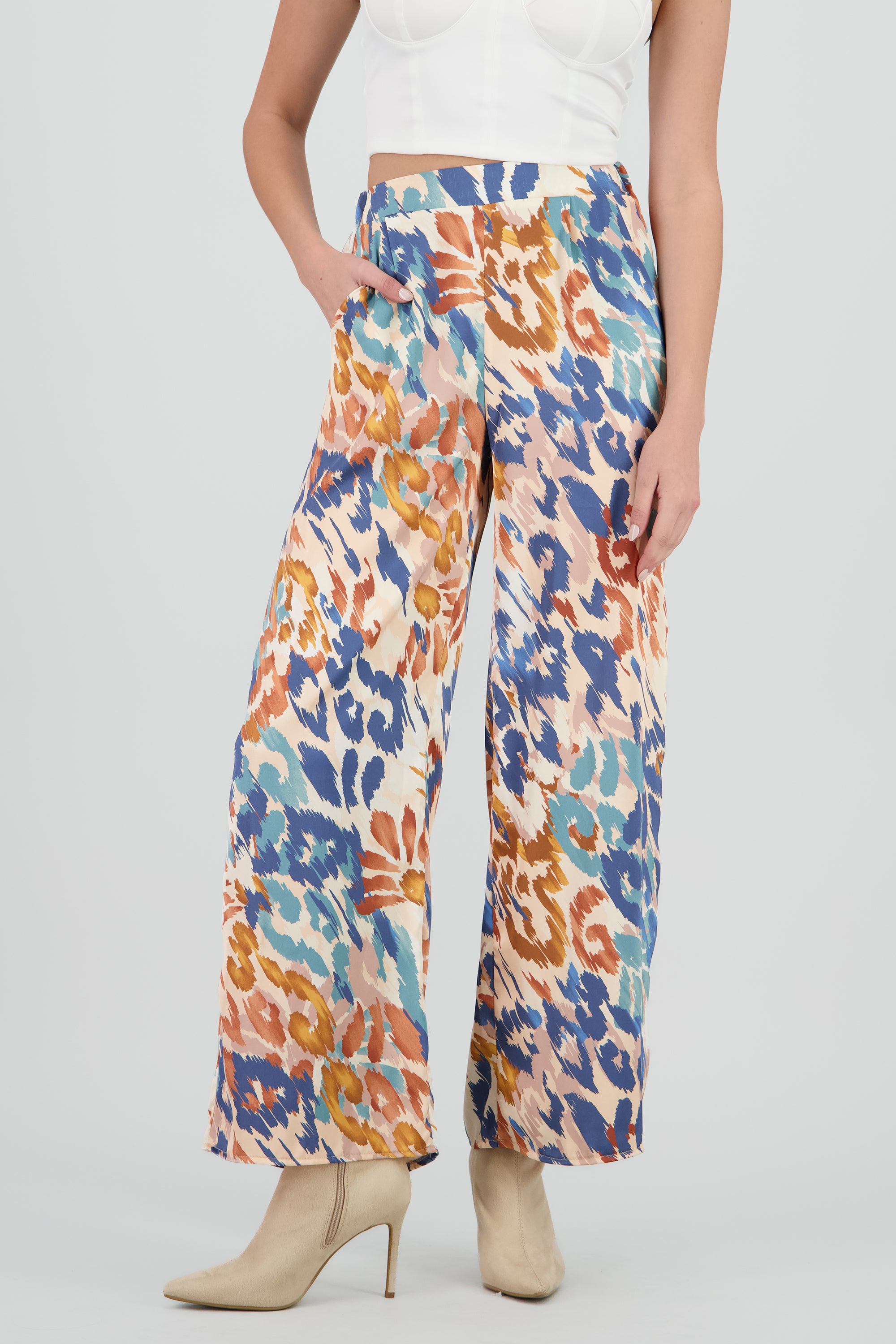 Wide Leg Pants with Satin Detail